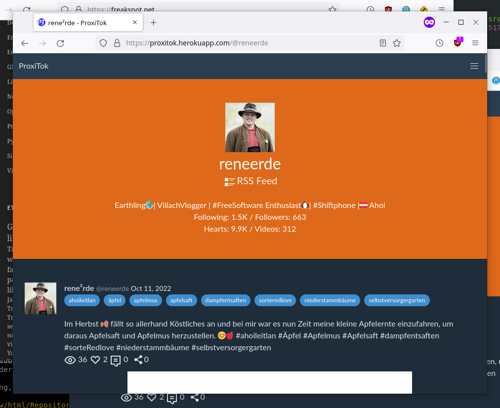 TikTok ist ein zentralisiertes soziales Netzwerk und erfordert die Nutzung von proprietärer Software. Es ist praktisch unmöglich, TikTok mit dem Browser bequem einzusehen, ohne Privatsphäre oder Freiheit zu verlieren, ... es sei denn, du verwendest eine andere Schnittstelle, wie ProxyTok, die ich in diesem Artikel beschreibe.