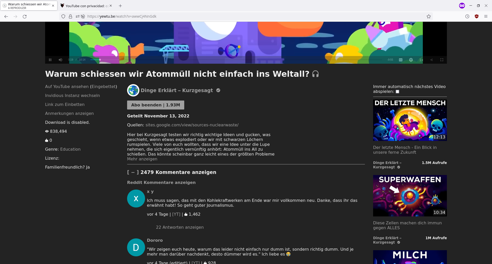 Bekanntlich ist YouTube keine freie Software und respektiert deine Privatsphäre nicht, aber leider gibt es Videos, die nur da sind. In diesem Artikel stelle ich Invidious vor, eine einfache Möglichkeit, YouTube-Videos anzusehen, ohne die proprietäre Software von Google auszuführen.