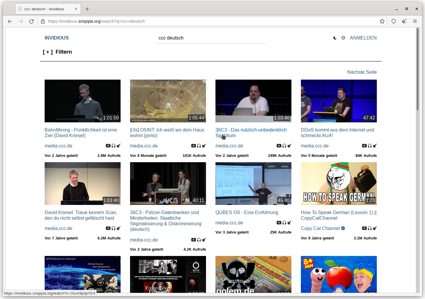 Ich lade dich ein, auszuprobieren, wie es funktioniert. Nachfolgend siehst du einige der Möglichkeiten, die Sie mit Invidious nutzen können.