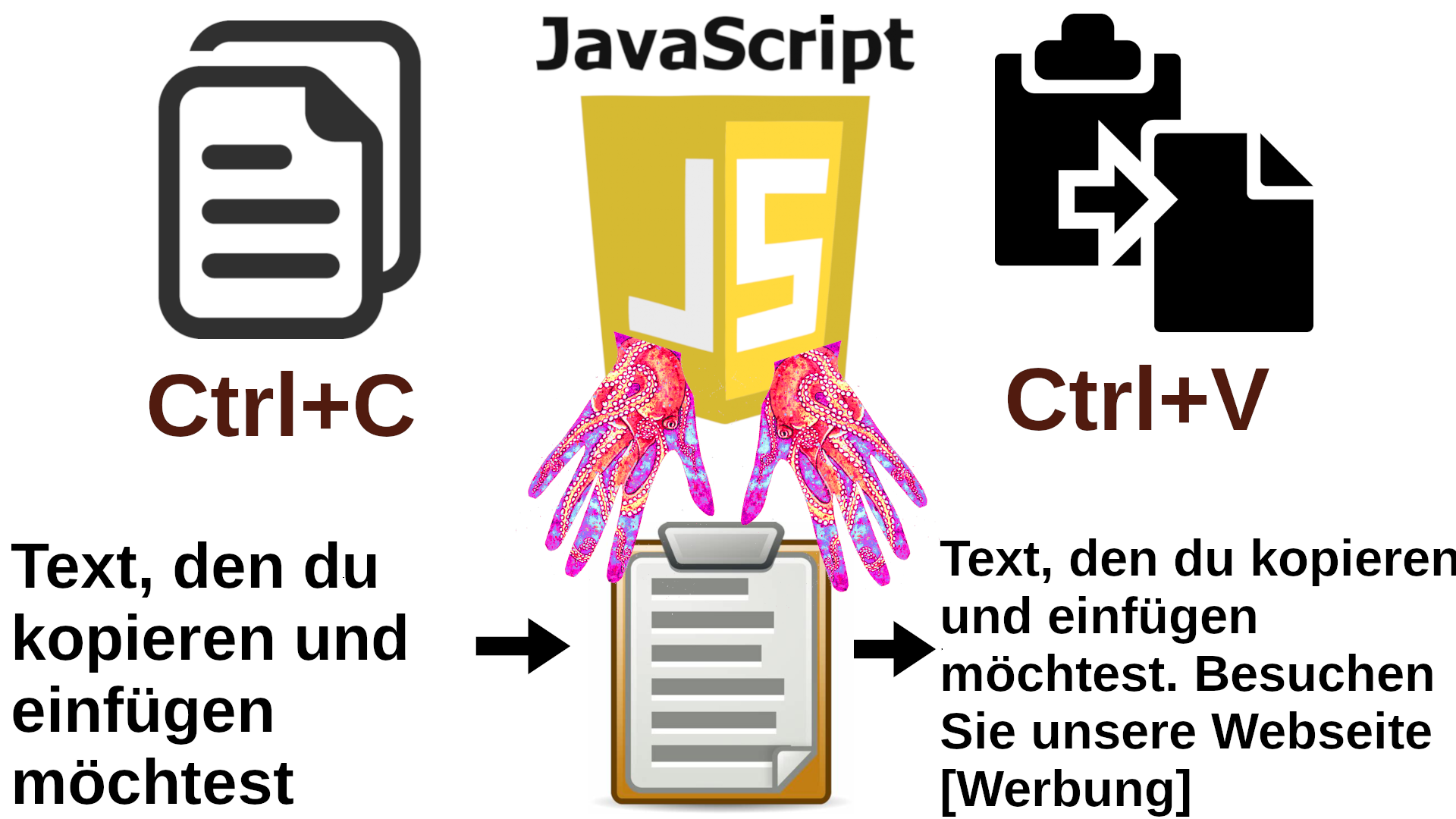 Ist es dir schon einmal passiert, dass du Text von einer Seite kopierst und beim Einfügen erscheint ein geänderter Text oder gar nichts? Das liegt daran, dass die Seite einen JavaScript-Code ausführt, der die Zwischenablage verändert.