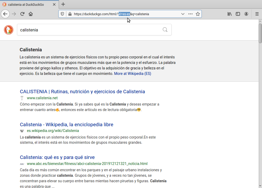 Lo malo es que la versión HTML de DuckDuckGo no detecta las preferencias de idioma del navegador. Esto puede ser un inconveniente si estoy buscando cosas en español, ya que siempre me va a mostrar antes páginas en inglés.