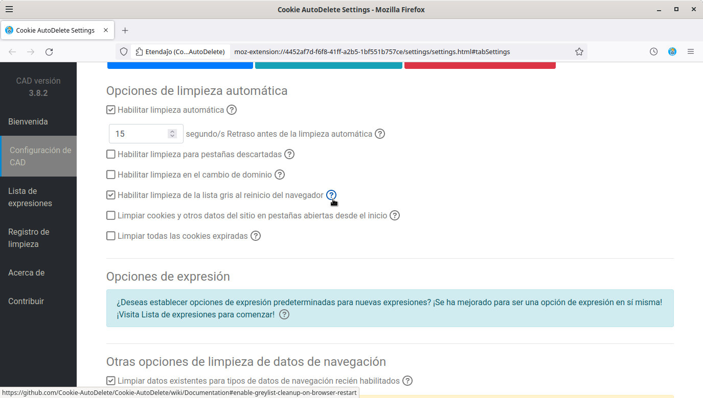 En cualquier caso, podemos establecer las reglas para eliminar galletas a nuestra medida con la extensión para Firefox (y navegadores derivados de Firefox) Cookie AutoDelete.