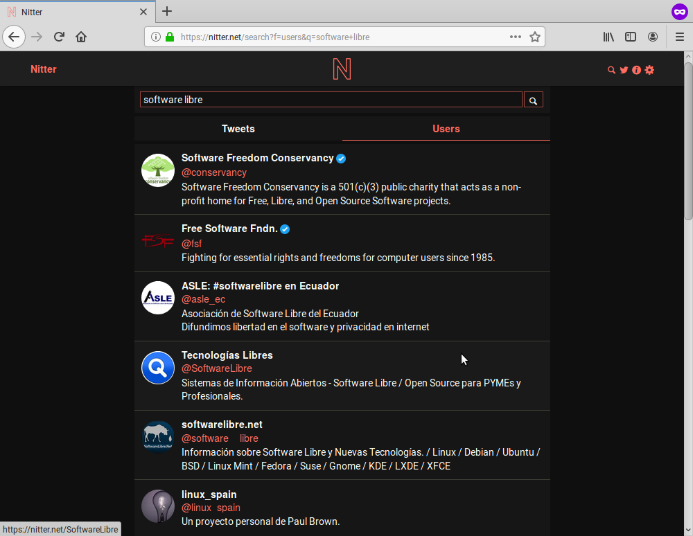 Twitter is a centralized social network that requires the use of proprietary software. It's almost impossible to use Twitter without giving up your privacy or freedom... unless we use another front-end, such as Nitter, which I describe in this article.