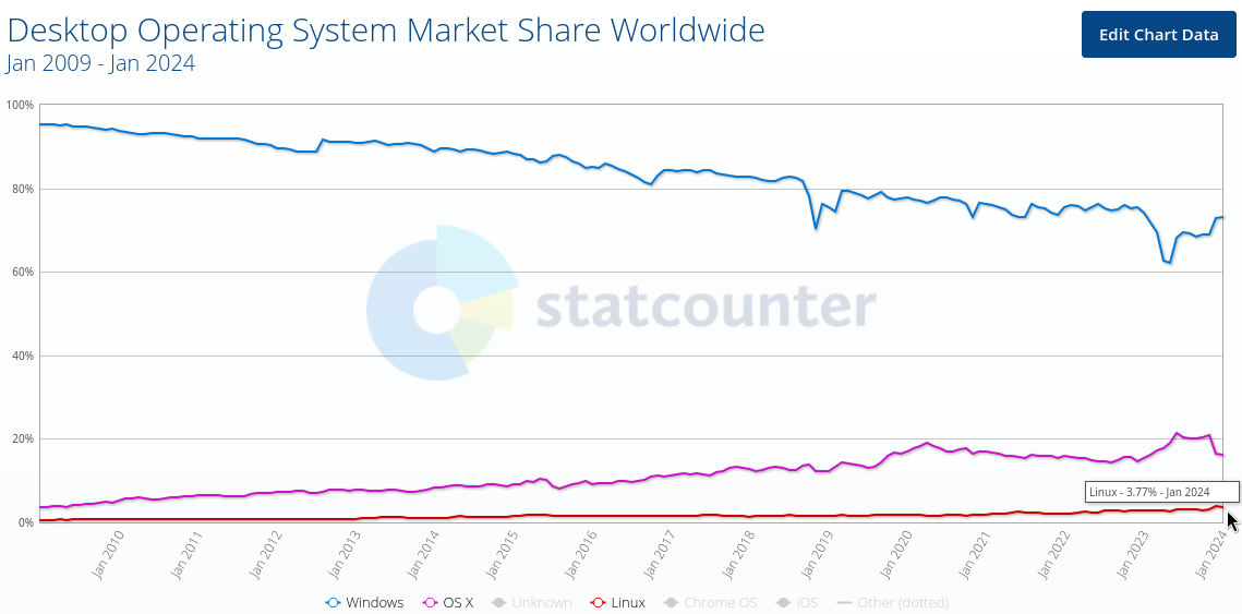 1. https://gs.statcounter.com/os-market-share/desktop/worldwide/#monthly-200901-202401
