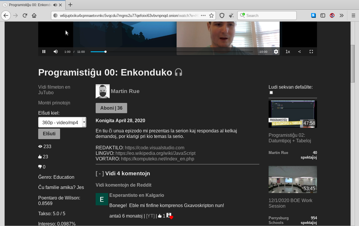 - Permesas enigi videojn el Invidious en via retpaĝo, kiel la jenan: