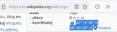lokon (la latitudon kaj longitudon). Ekzemple, se vi estas en Vigo (en