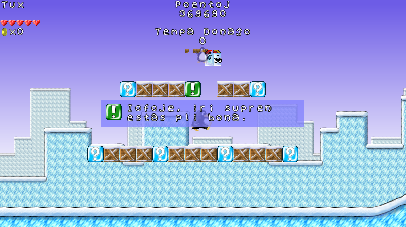 La ludo havas similan trajton ol SuperTux, ankaŭ kelkajn bruojn, bildojn kaj muzikon. Sed ankaŭ havas proprajn trajtojn. Unu el miaj favorataj estas, ke Tukso povas preni, ĵeti kaj malpreni objektojn. Se vi bezonas rompi lignan blokon, kiu staras ekster atingodistanco de Tukso, vi povas preni kaj ĵeti glacian blokon supren por rompi ĝin. La ebloj estas grandegaj, kaj oni povas esti tre krea.