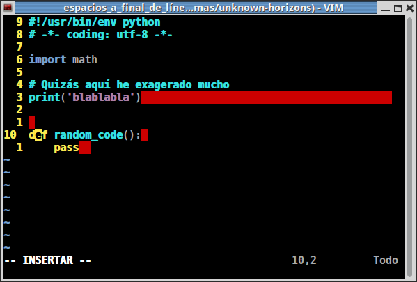Este artículo va dirigido a programadores y a personas que editan texto sin formato. Los espacios a final de línea son algo molesto e inútil cuando la gente los pone sin pensar. Muchas veces porque no utilizan un buen editor que les señale dónde hay espacios a final de línea.