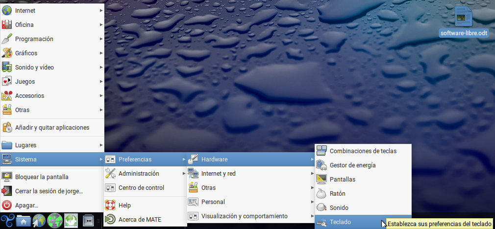 En el entorno de escritorio MATE es posible añadir una distribución de teclado pulsando en Sistema>Preferencias>Hardware>Teclado desde el menú de inicio.