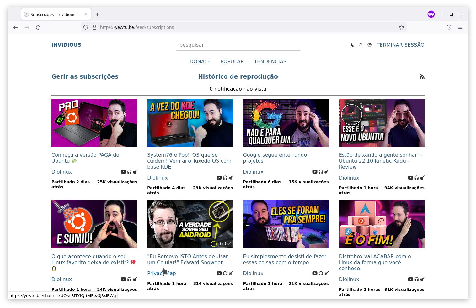 Invidious é uma interface livre e leve para o YouTube que é feita com a liberdade de software em mente. Aqui estão algumas das suas características:
