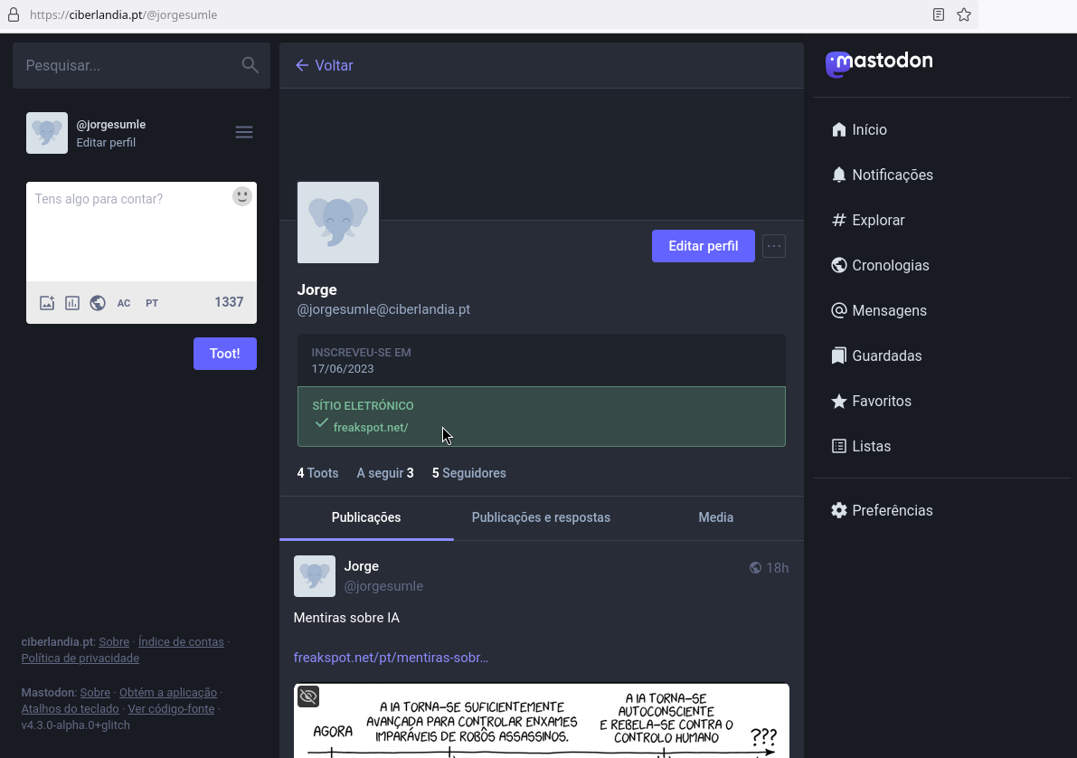Há alguns anos, eu tinha uma conta num precursor do Fediverso.