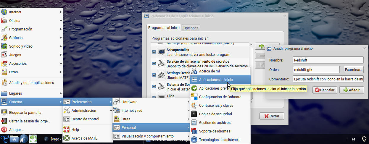 de aplicaciones o ejecutando redshift-gtk desde la terminal.